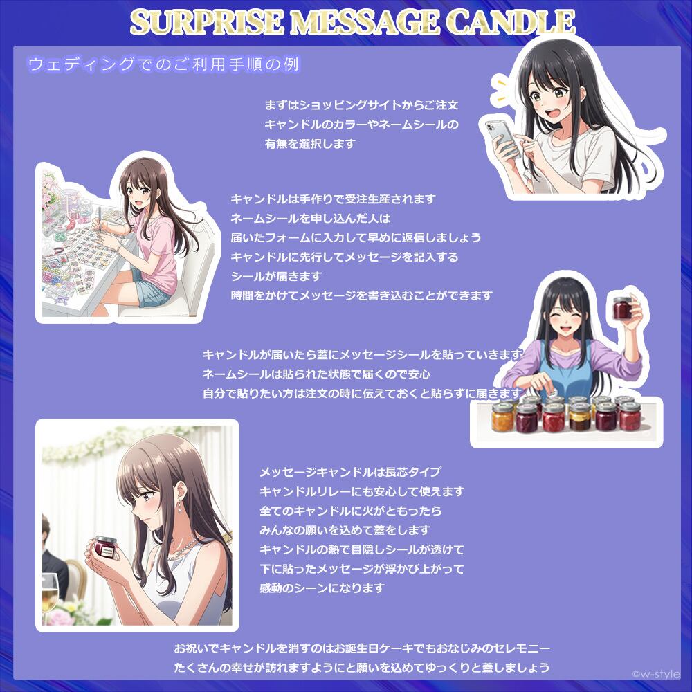 結婚式の席札、キャンドルリレー用キャンドル、ご出産祝いや誕生日、母の日や父の日、推し活グッズにと、さまざまな記念日のプラスワンギフトとしてお贈りいただけましたら幸いです。