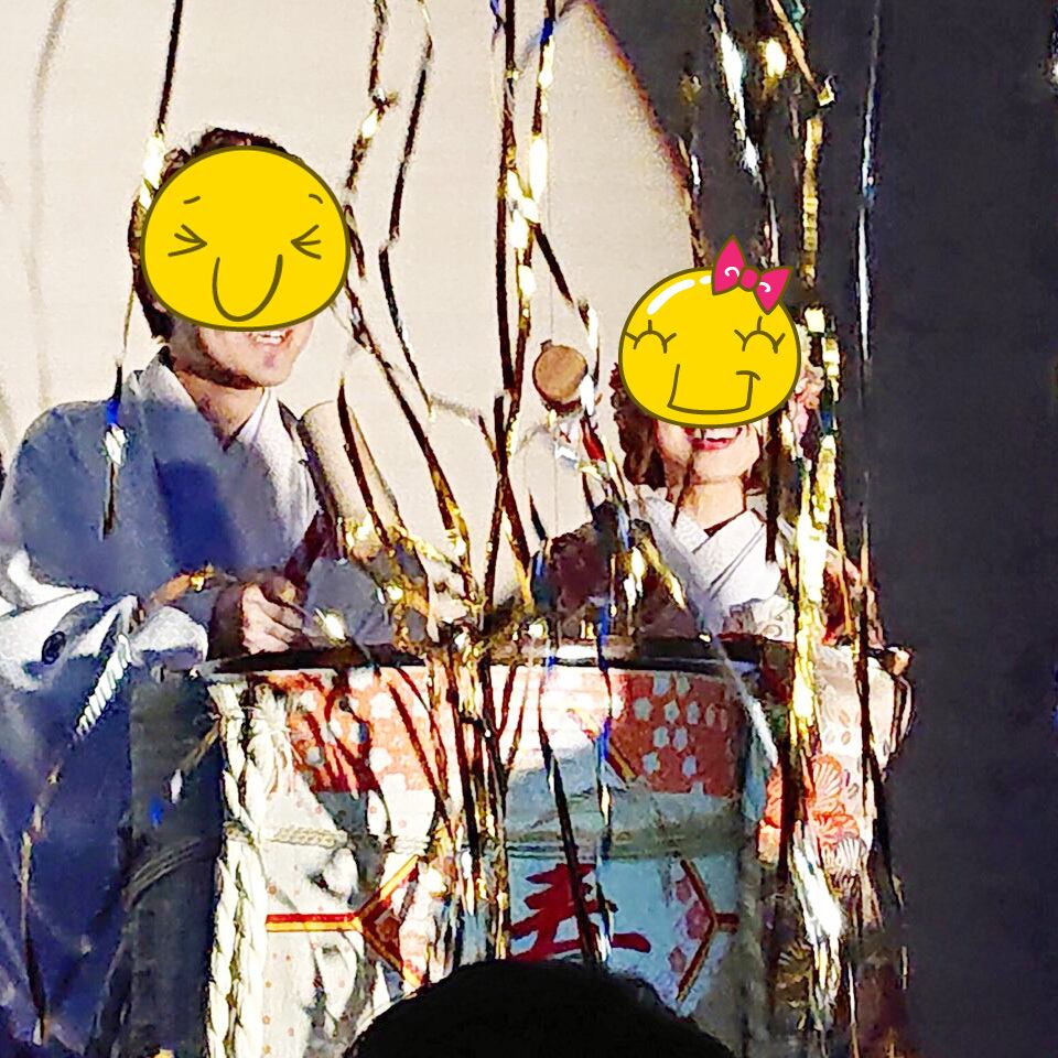 こも樽から金銀のメタリックテープが舞い上がる様子は、会場の隅々までご覧いただけます!